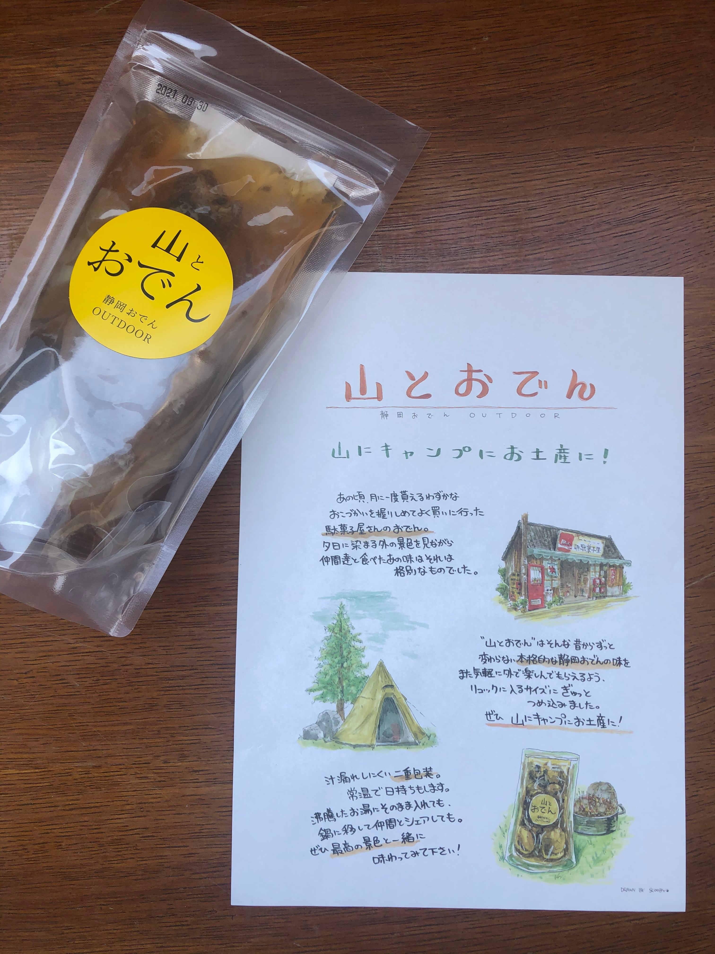 「山とおでん」は昔から変わらない本格的な静岡おでんの味を気軽に楽しんでもらえるよう、リュックに入るサイズにぎゅっと真空パックにしてつめ込みました。